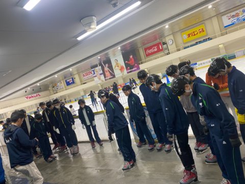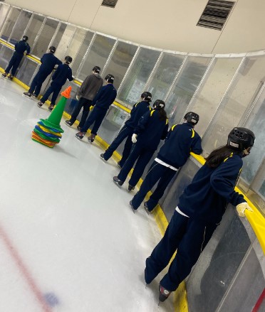 前半はスケートレッスンを行い、インストラクターさんの指導のもと、靴の履き方から、基本的な滑り方、バランスの取り方などを学びました。最初は緊張していた生徒たちも、少しずつ自信を持って滑れるようになりました!