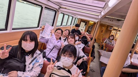 その後はクルーズ船に乗り、道頓堀や大阪の歴史について触れました。