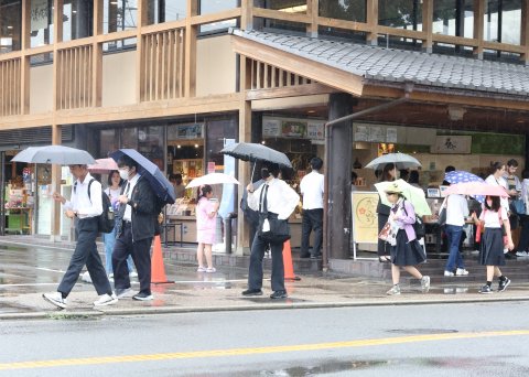 雨天ではありましたが、班ごとに散策を行い、お土産や食べ歩きなどをしました。
